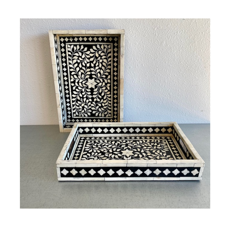 Bandeja con incrustaciones de madreperla lista para enviar, incrustaciones de hueso de artesanía creciente