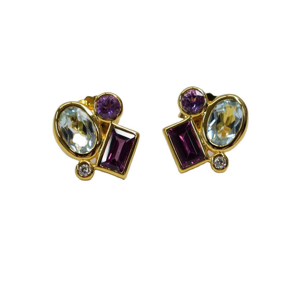 Listo para enviar S925 chapado en oro de 14 quilates Pendiente clásico de Topacio azul natural y rodolita Personalizable para minoristas OEM y ODM