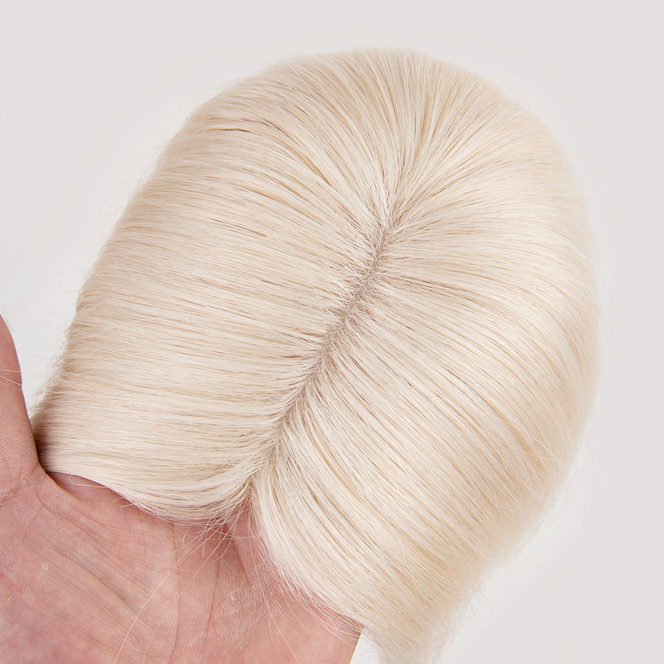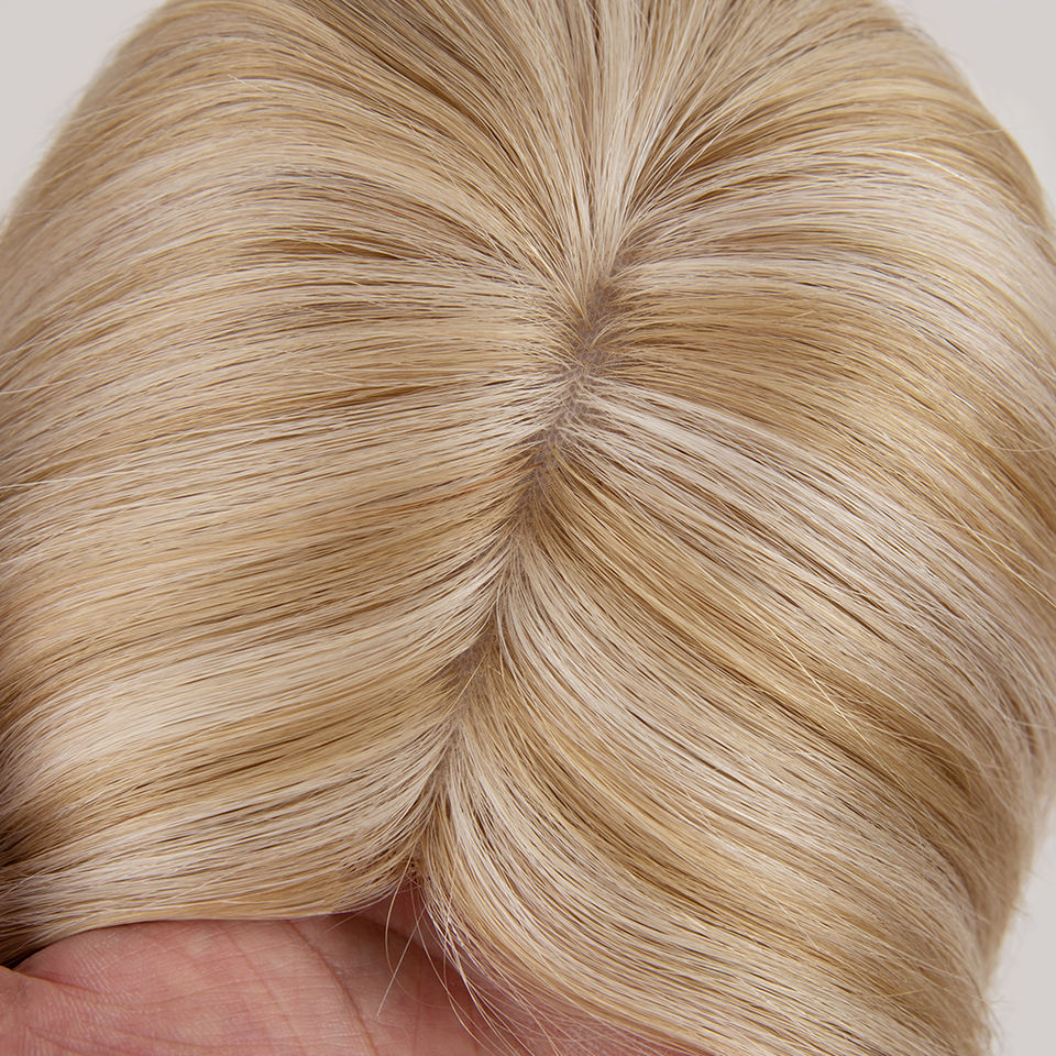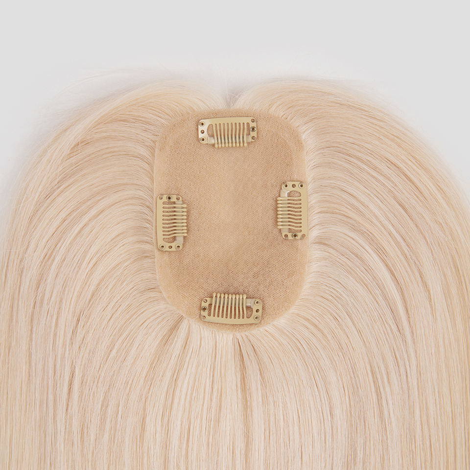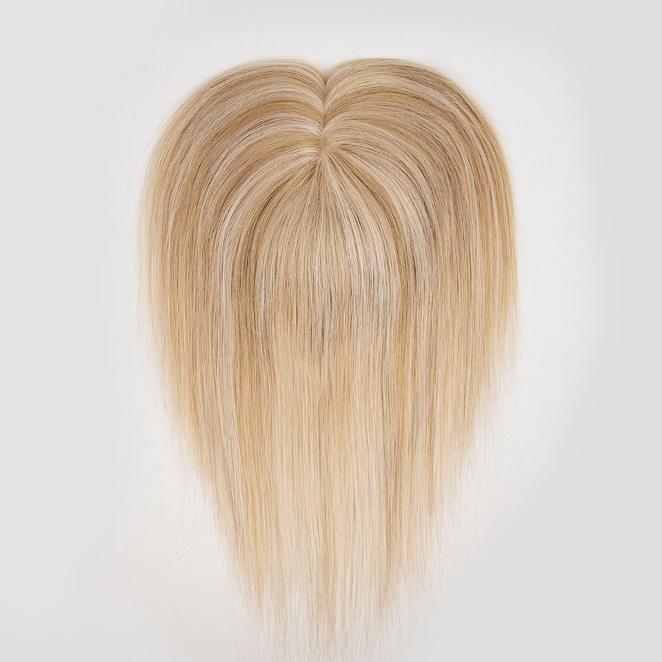 Topper de Cabello Humano Virgen Color Dorado Listo para Enviar, con Base de Seda y Clip, para Mujer, Color Balayage