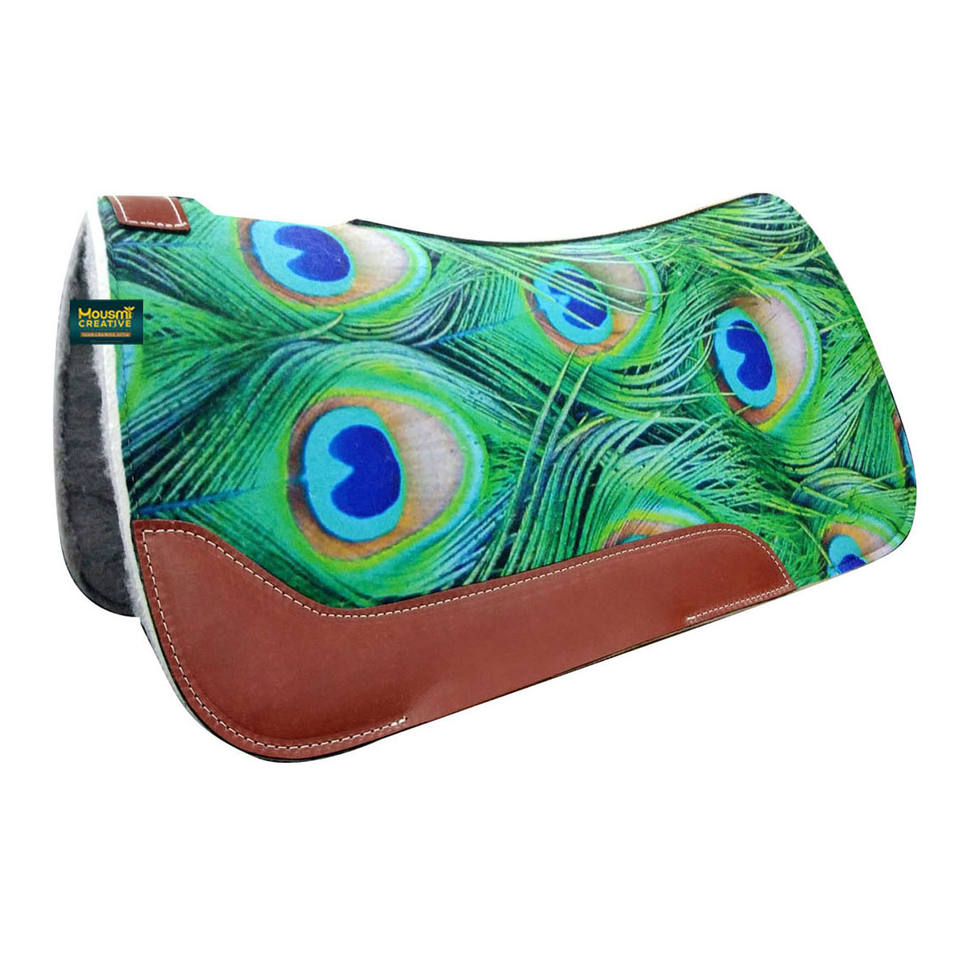 Product Name:Western Horse Printed Felt (Numnah) Contoured Cutback Saddle Pad