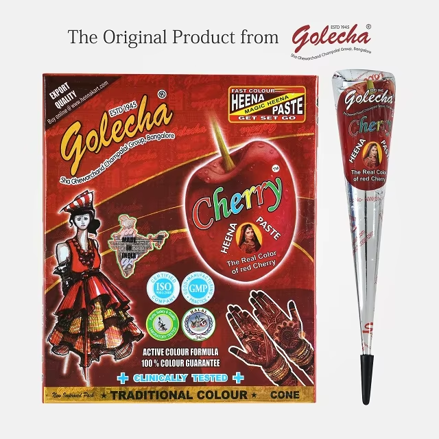 Cono de Mehandi Rojo Cereza Listo para Usar, Pasta de Henna Suave para Diseños de Bodas, Novias y Festividades
