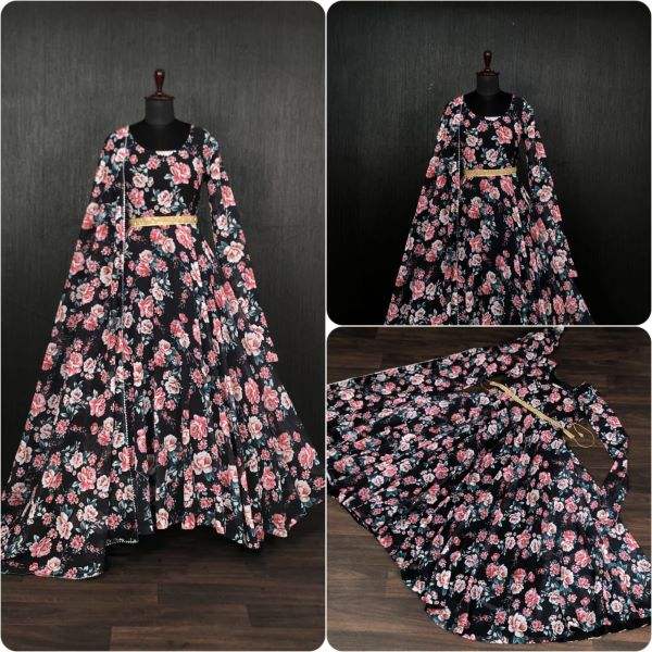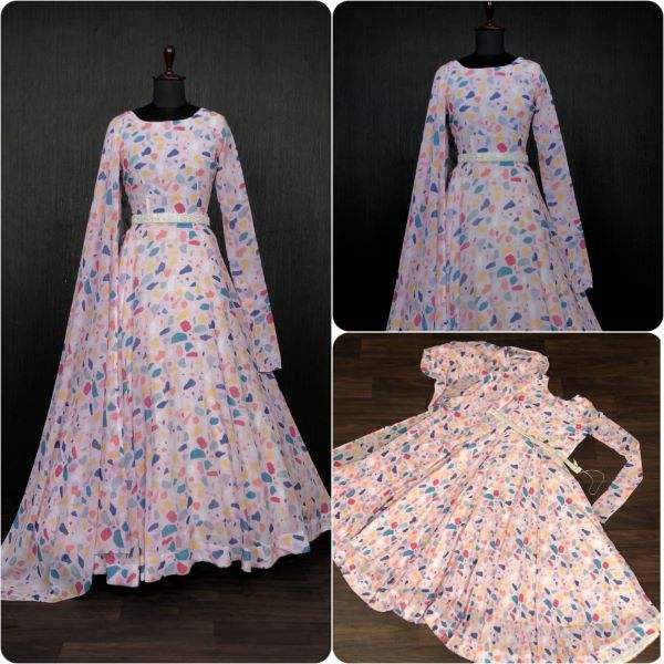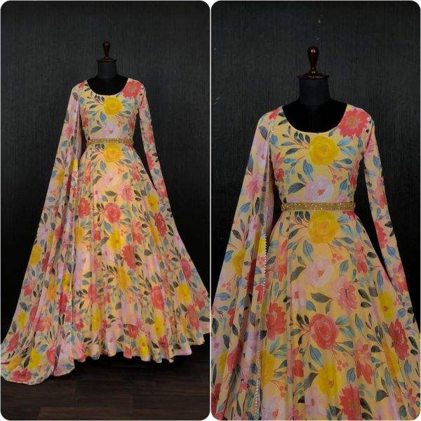 Readymade-vestido de diseñador Dupatta Collection, estampado Floral y tela Georgette pura, impresión Digital, completamente cosido con cinturón