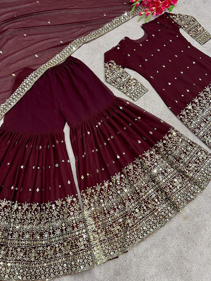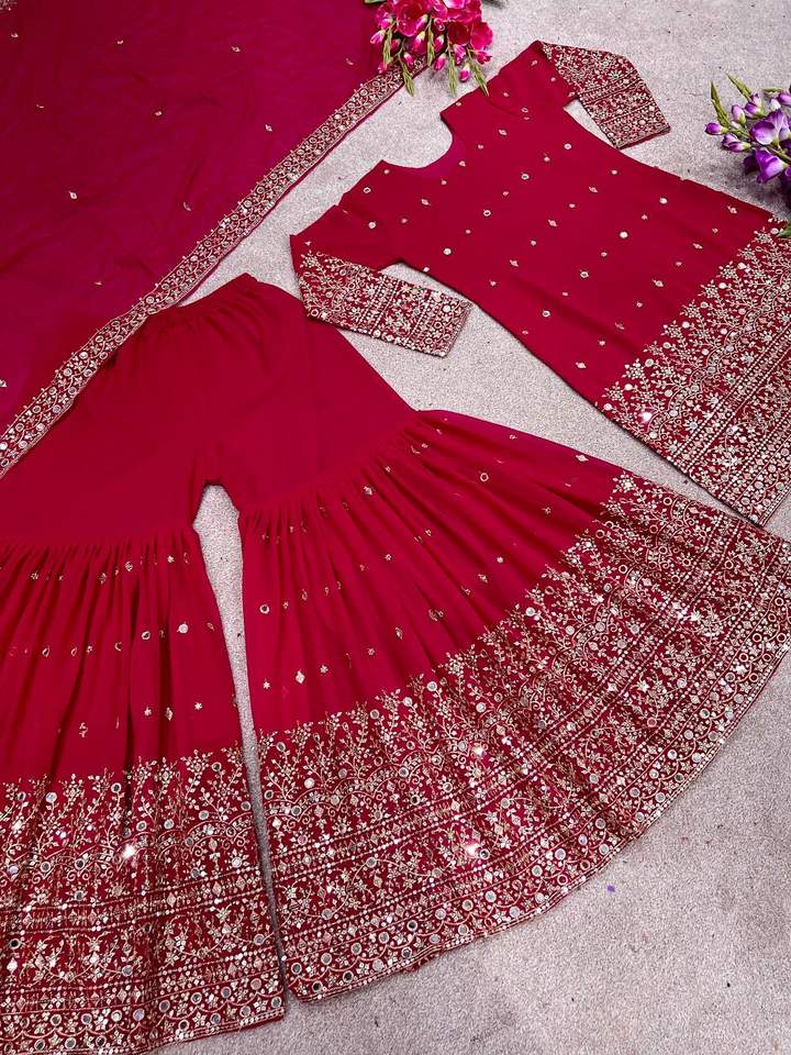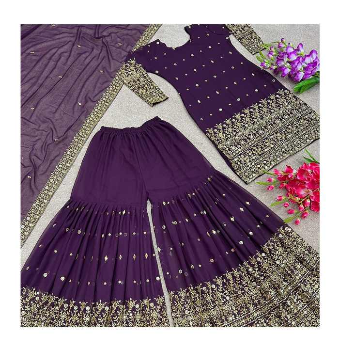 Característica:Juego recto Kurta Sharara & Dupatta