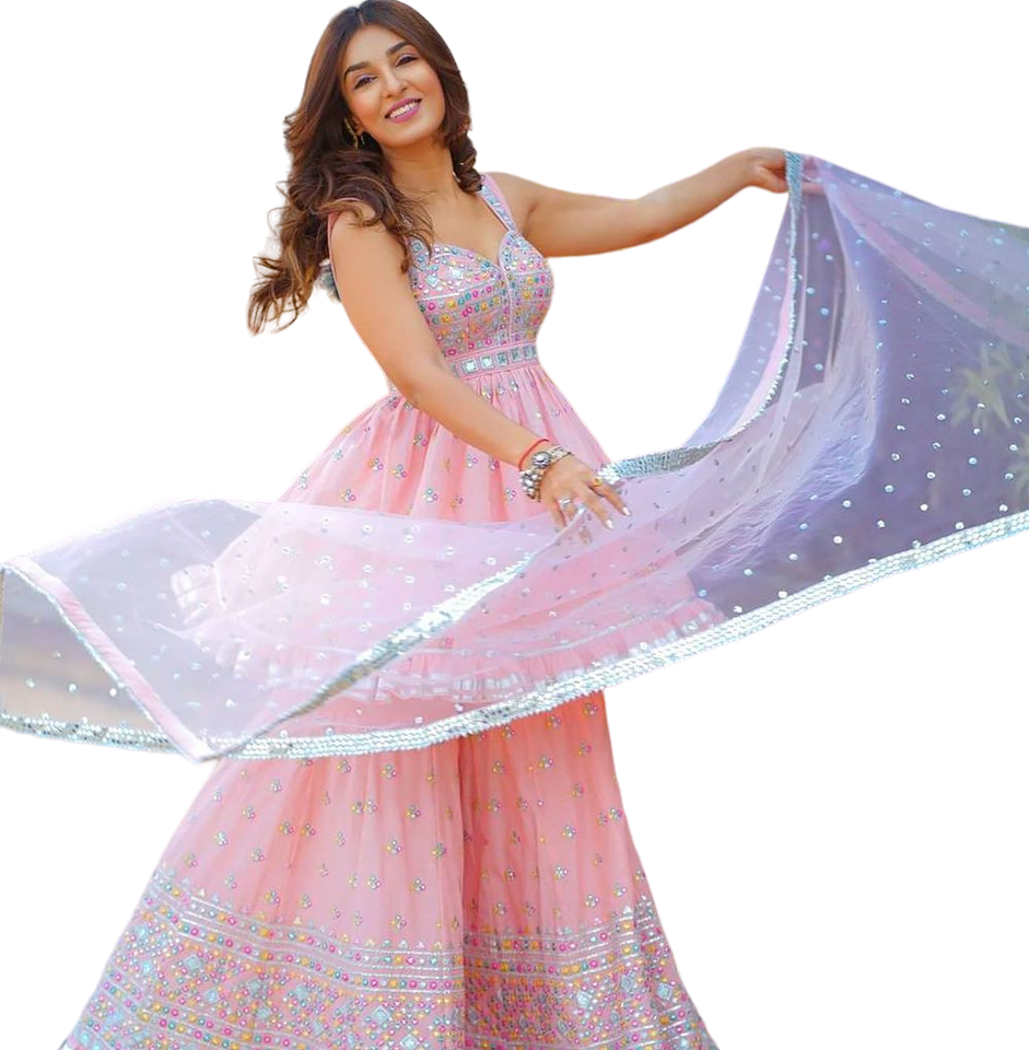 Característica:Juego recto Kurta Sharara & Dupatta