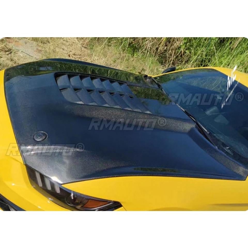 Cubierta de motor con apariencia de fibra de carbono real para Ford Mustang GT500 2015-2021, kit de carrocería, accesorios para automóvil