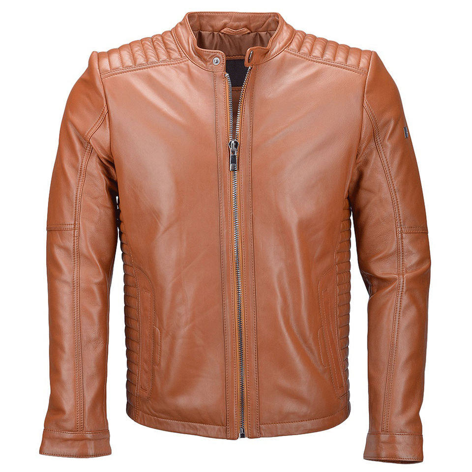 Chaquetas de cuero marrón para hombre de piel de vaca auténtica - Chaqueta de cuero estilo Cafe Racer acolchada con cremallera para hombre