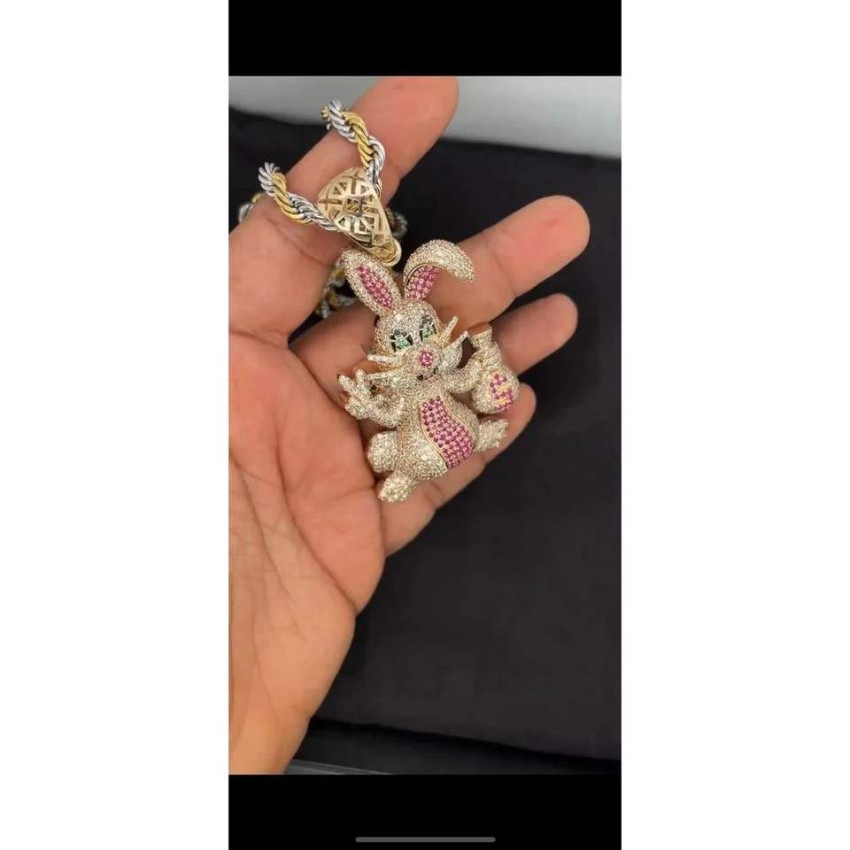 Colgante de Diamantes Reales Redondos Estilo Hip Hop con Dibujos Animados, Diamante Natural, Engaste Pavé en Oro Amarillo, Material de Aleación de Zinc