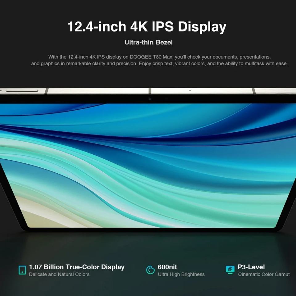 Tablet DOOGEE T30 Max con Carga Rápida Real, Pantalla 4K de 12.4 Pulgadas, 20GB (8+12)+ 512GB, Android 14, Cámara Dual de 50MP, 10800mAh