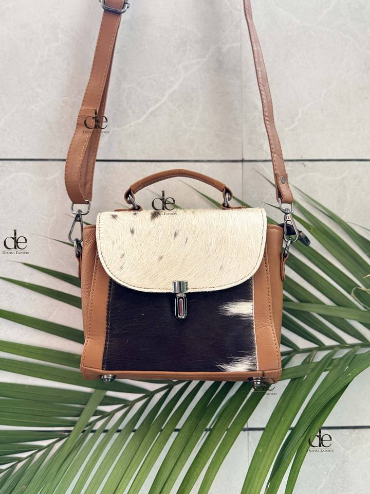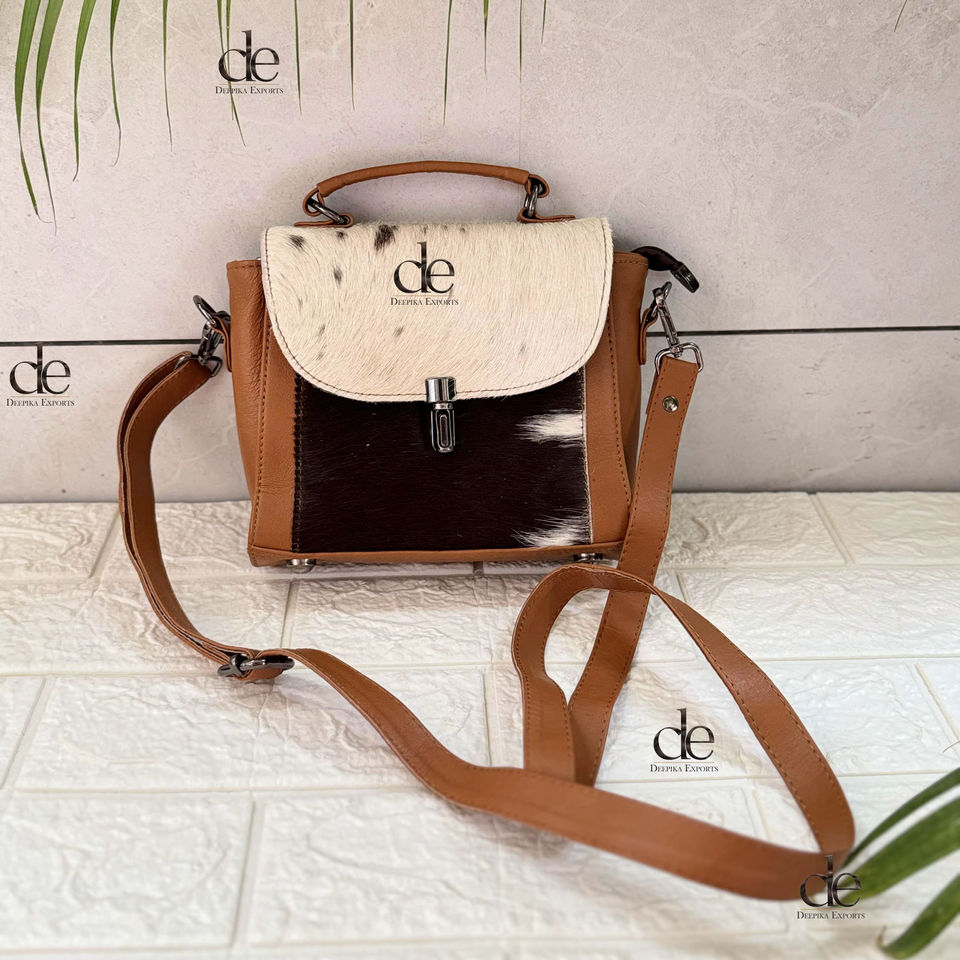 Womens Stylish Hair On Fur Leather Handbag