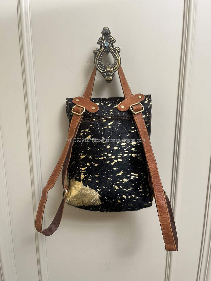 Type:Boho Vintage Stylish Black Metallic Fur Leather Backpacks