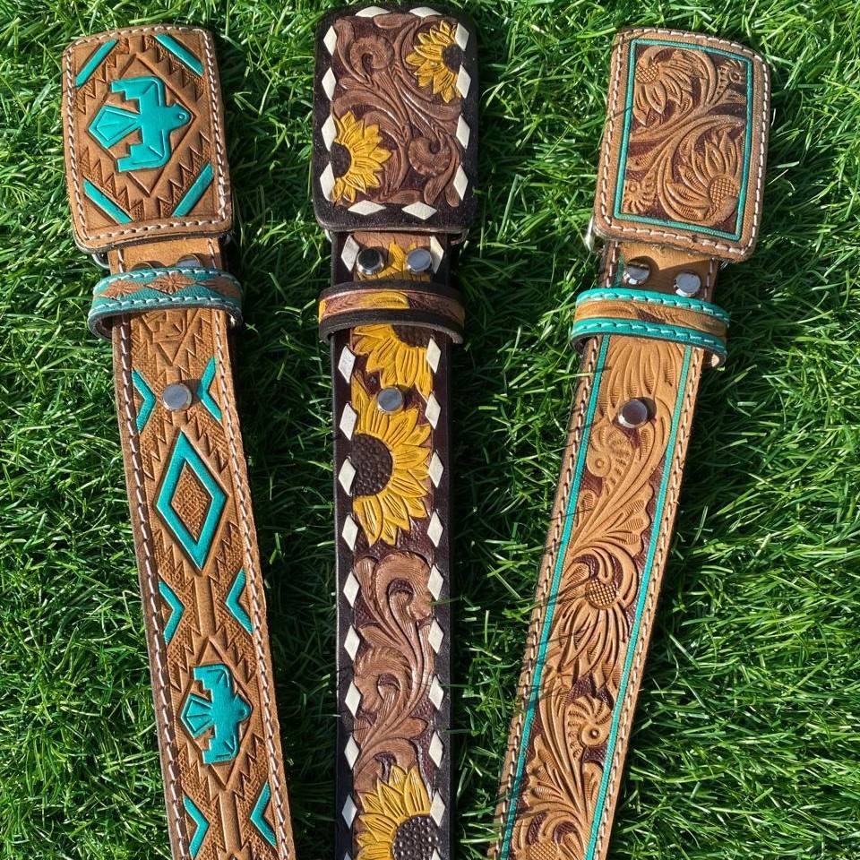 Designer Tooled Leather Belts