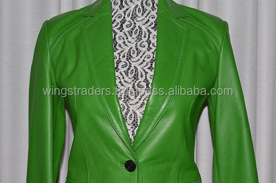 All Season Green chaqueta de cuero de las mujeres un botón Blazer Coat