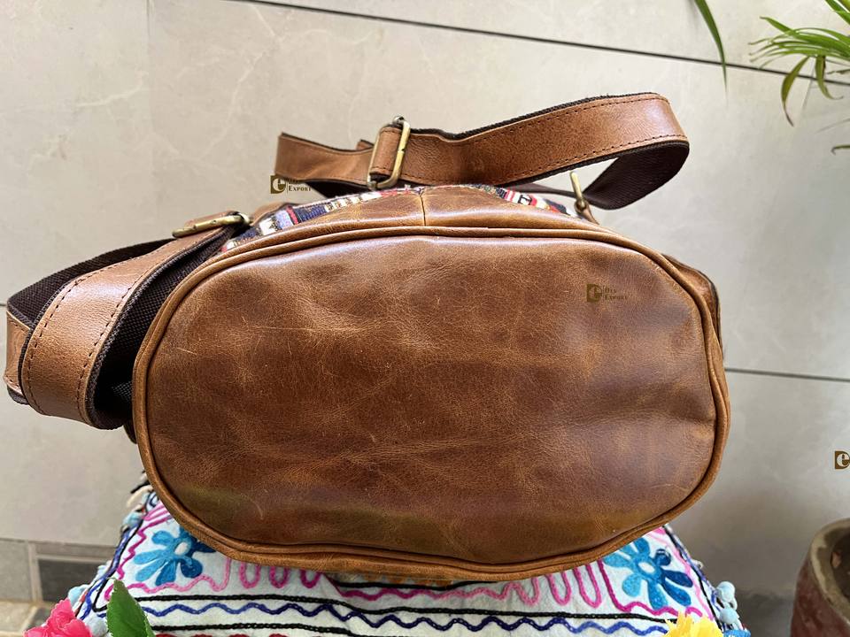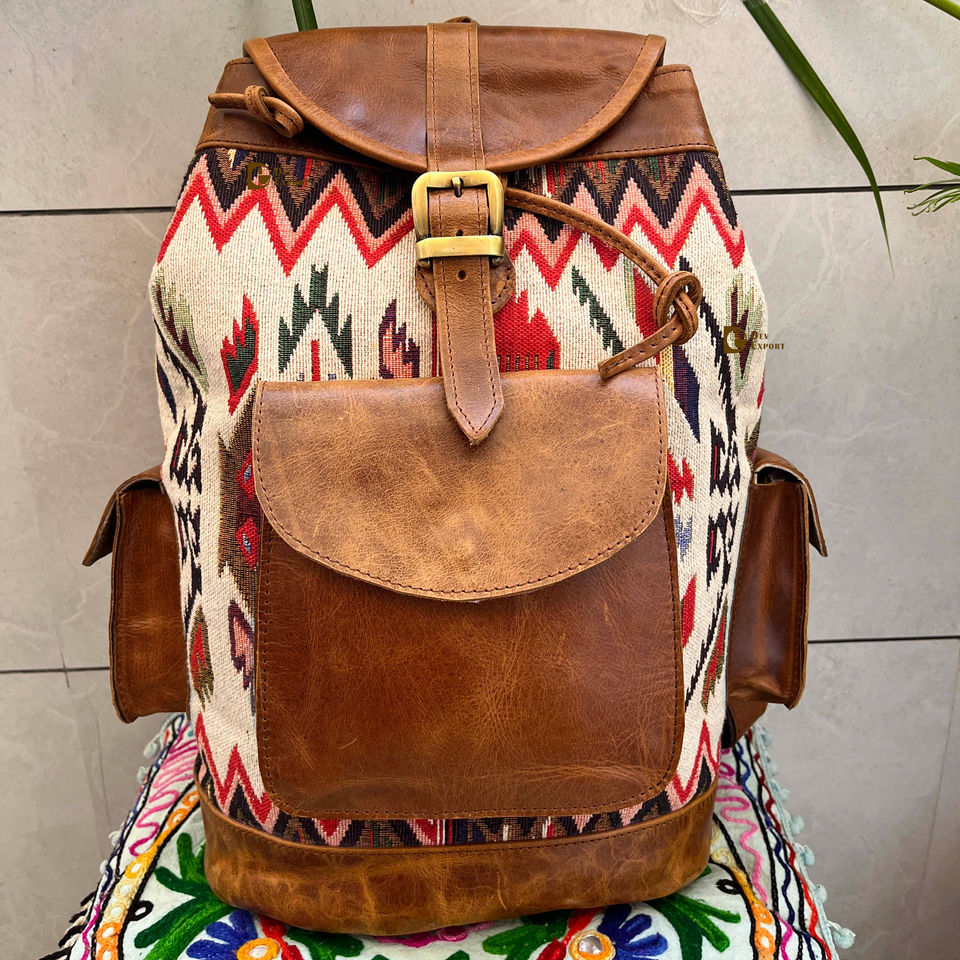 Mochila de cuero Jacquard hecha a mano de cuero auténtico mochila de usos múltiples al por mayor producto a granel