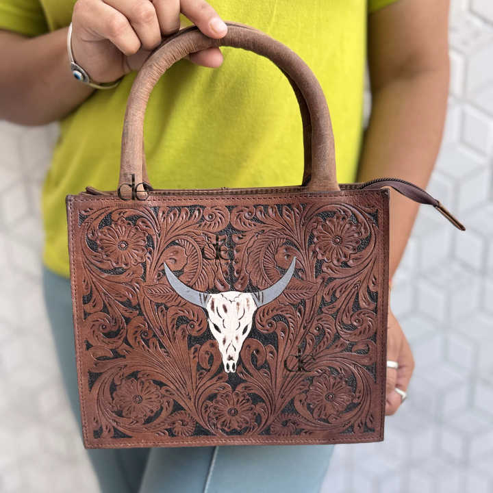Bolso de Hombro de Cuero Auténtico, Nuevo Diseño, Tallado a Mano, Estilo Bohemio, Vintage, Hecho a Mano, Tamaño Pequeño, Elegante