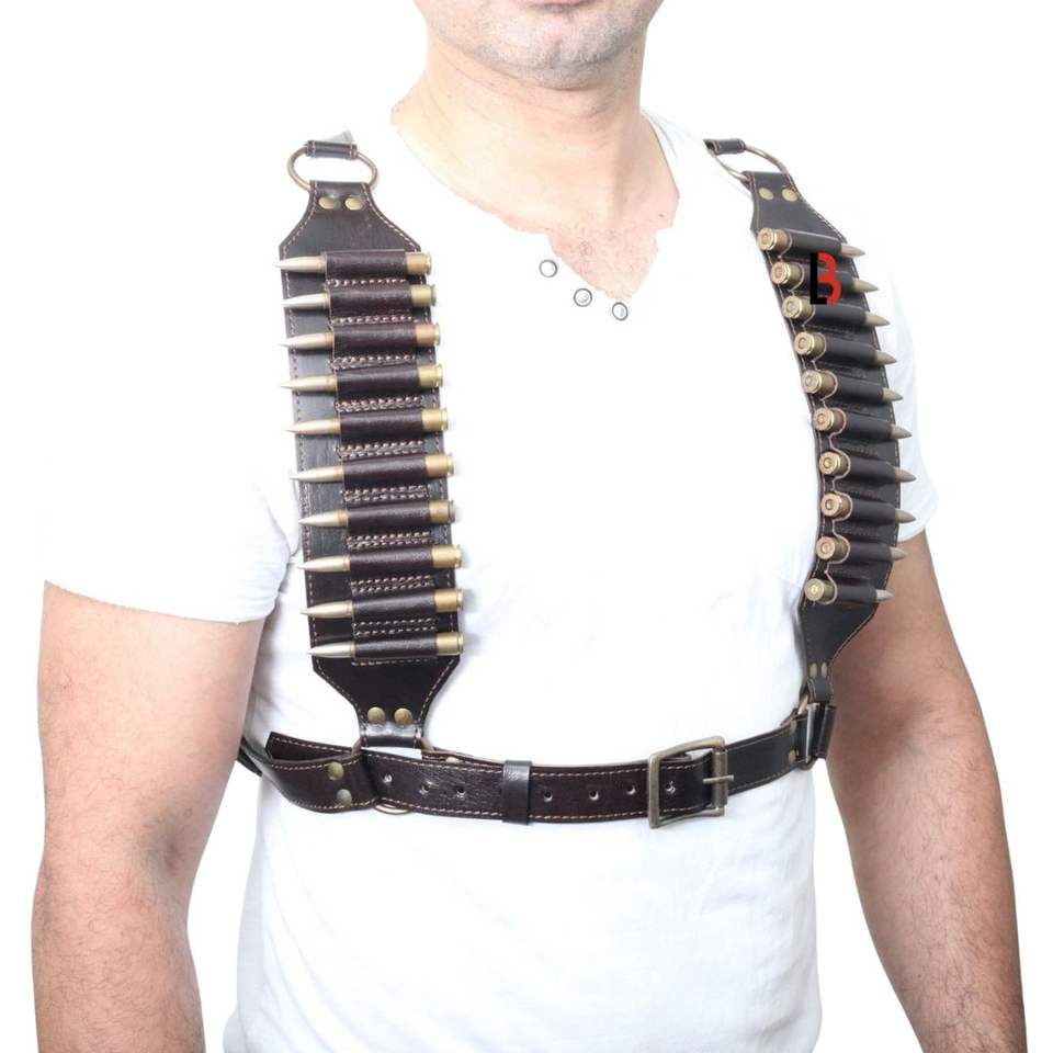 Cinturón de Cuero Genuino para Cartuchos de Rifle con Costuras Reforzadas