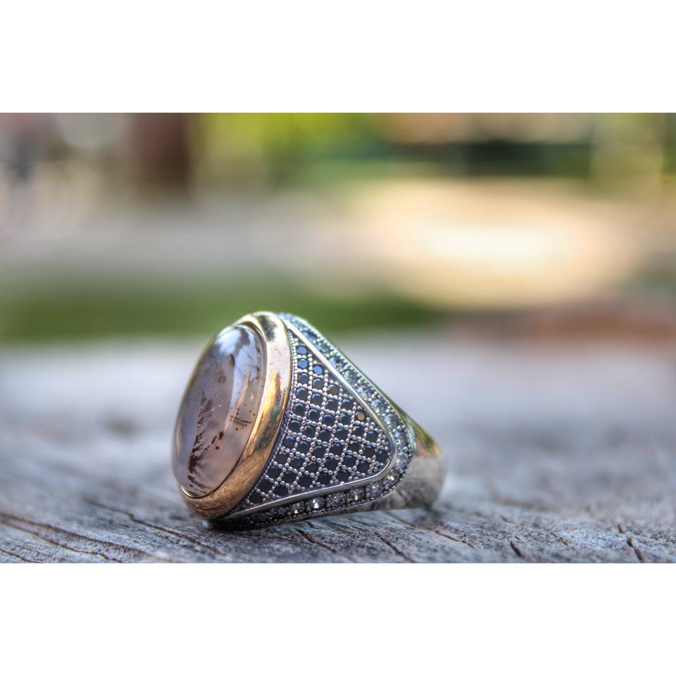 Anillo de Plata de Ley 925 Puro Real, Hecho a Mano en Turquía con Estilo Vintage de Lujo, Nuevo Modelo Moderno con Cristal de Ágata