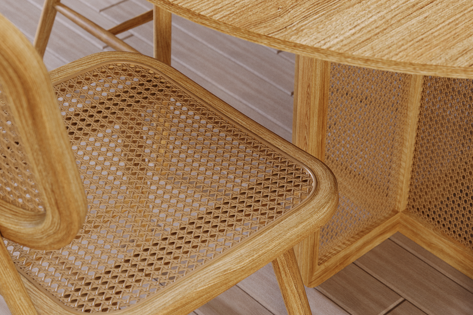 Madera maciza de teca y RatánMaterial