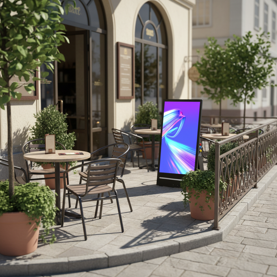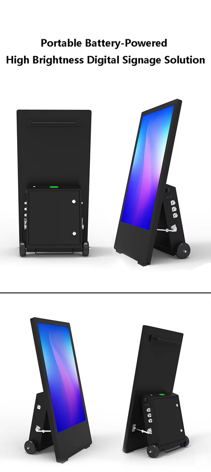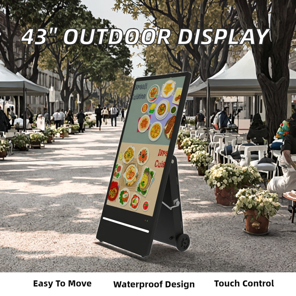 Pantalla Digital de 43 Pulgadas con Indicador de Batería en Tiempo Real, Batería Integrada, Kiosco Impermeable para Supermercado