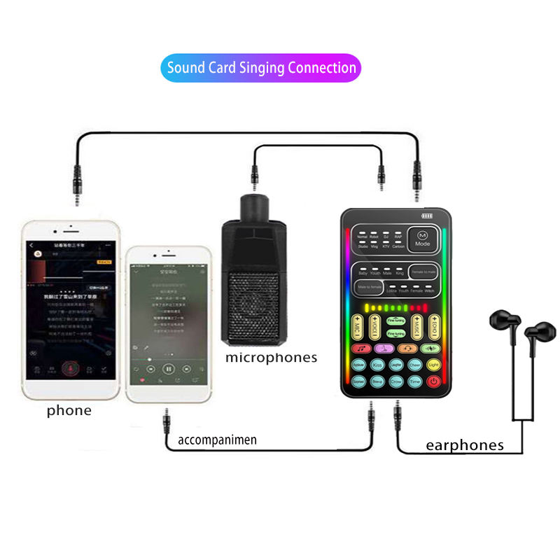 Dispositivo de Cambio de Voz en Tiempo Real I9, Cambio de Voz de Mujer a Hombre, Mezclador de Audio de Producción de Voz, Tarjeta de Sonido Universal para Android