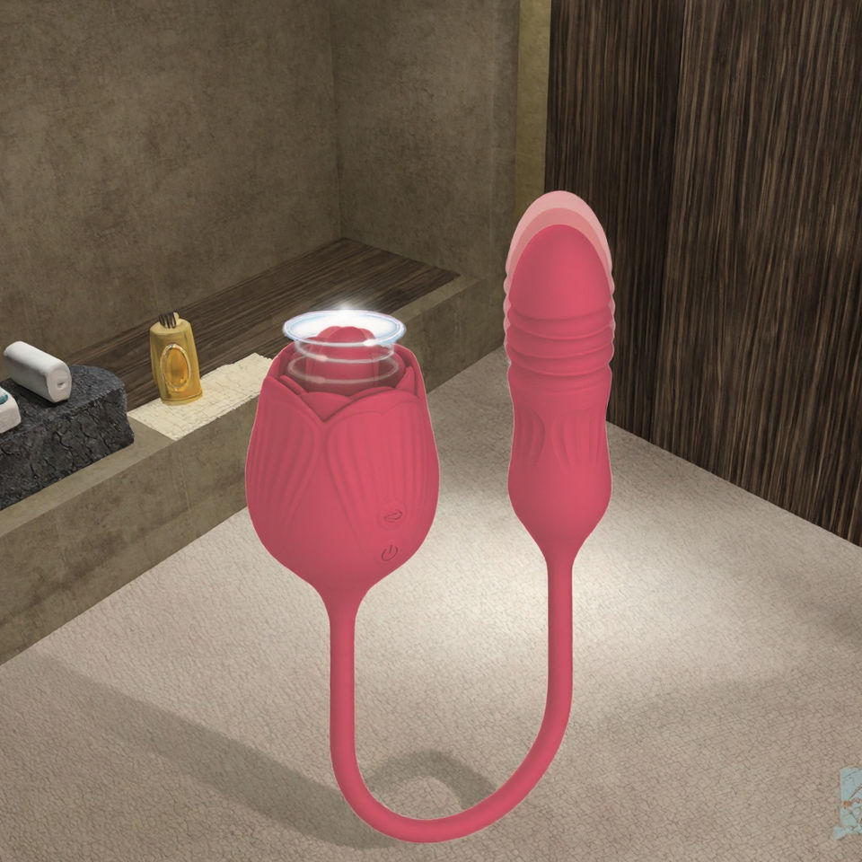 Vibrador Realista con 10 Velocidades, Empuje Telescópico, Succión, Forma de Rosa, Recargable por USB, 100% Impermeable, de Látex para Mujeres