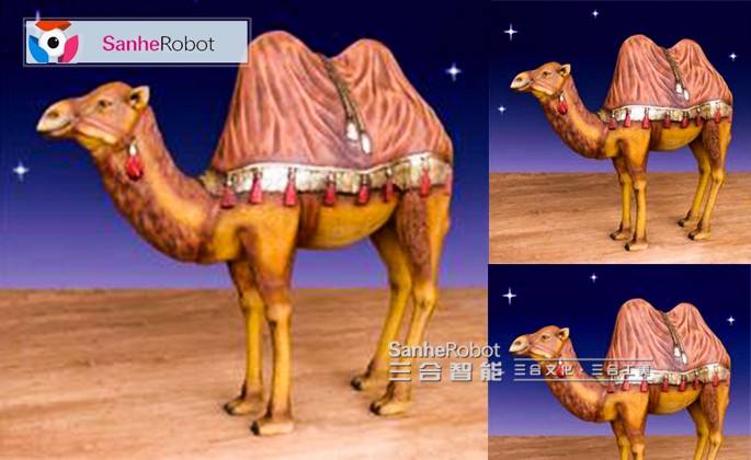 Escultura animatrónica realista de animales de camello de tamaño real para centro comercial, parque de atracciones o museo