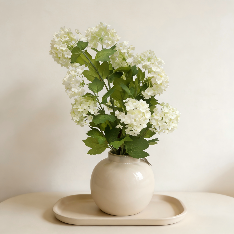 Hongo de Hortensias Artificiales Realistas | Lobularia Maritima Mixta en Maceta de Cerámica con Acabado Esmaltado para Decoración de Interiores de Oficinas y Hogares