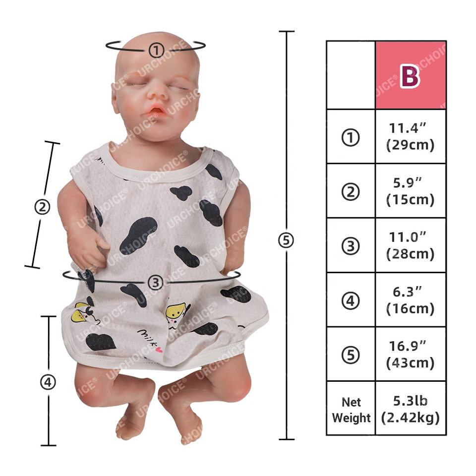 Realista tipo B suave 17 pulgadas 43Cm silicona sólida completa Sleepy ojos cerrados Reborn Baby Boy para niños pequeños juguete 2,5Kg 5.3Lbs peso
