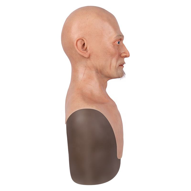 Máscara de silicona realista con barba arraigada, capucha masculina, Cosplay, tocado de Halloween, accesorio de película de fiesta, cubierta de cabeza de silicona para hombre viejo