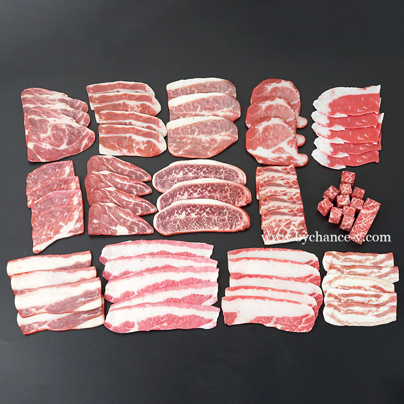Modelo de rebanada de tocino crudo de simulación realista perfecto para exhibición de restaurantes y fotografía de comida