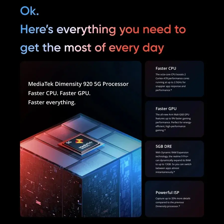 Realme 9 Pro Plus 5G Teléfono móvil original Versión global Dimensity 920 Son-y Imx766 OIS Cámara NFC 60W Superdart 6,4 ''AMOLED