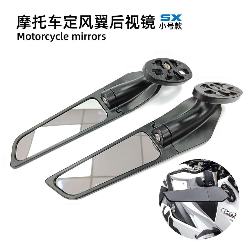 Espejo retrovisor con juego de alerones, lente plana de plástico negro para motocicleta de calle, mejora de modificación SX 092