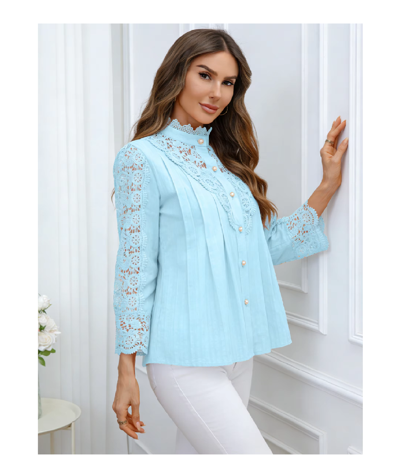 Camisa de Encaje a Precio Razonable, Diseño Personalizado, Mangas Largas, Ropa de Mujer, Nuevo Estilo