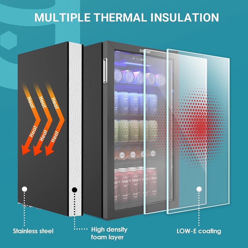 Refrigerador de Bebidas Rebirth RBC, Enfriador de 126 Latas, Mini Refrigerador con Puerta de Plástico, Pantalla Digital de Temperatura, Estantes Ajustables, para Refrescos