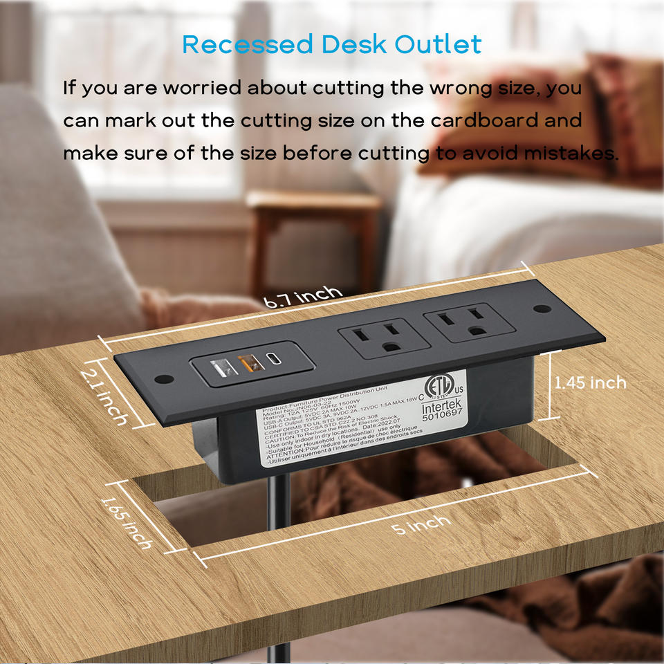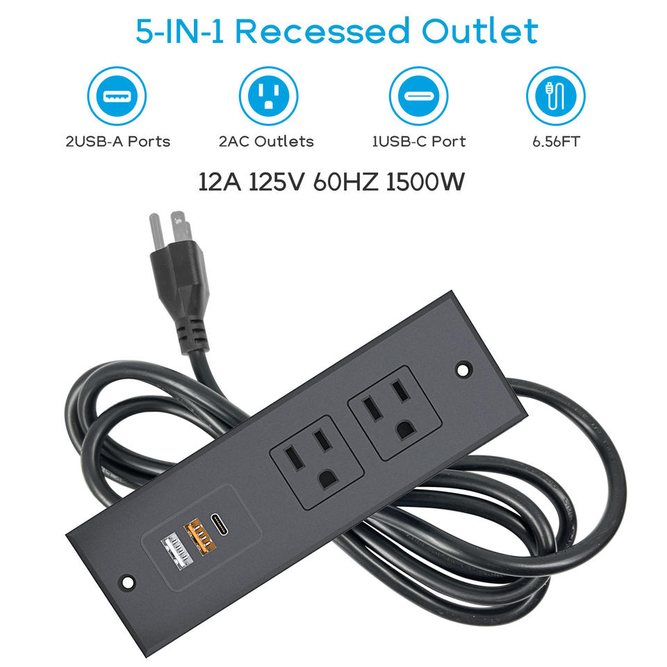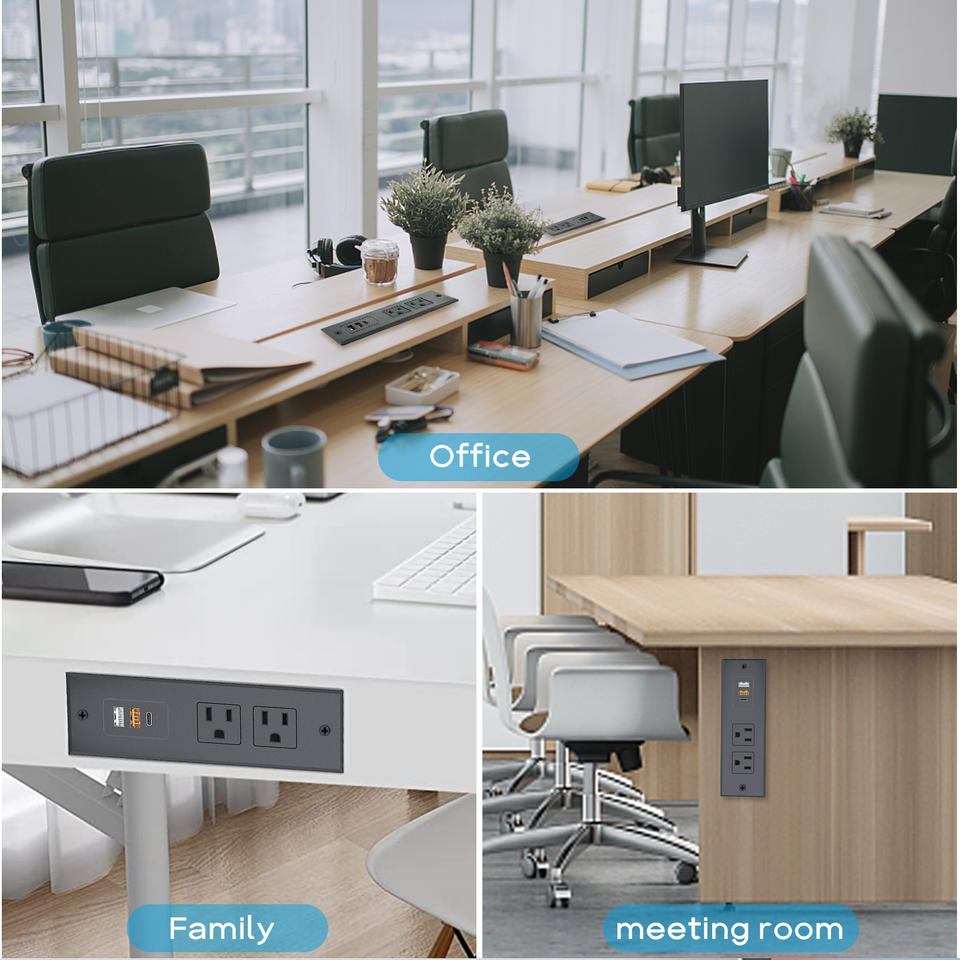 Regleta empotrada con puerto USB-C 20W para conferencias, tomacorriente empotrado, carga rápida USB-C QC3.0 3A y USB-A para mesa