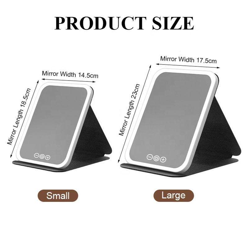 Lámpara Espejo de Maquillaje de Piel Recargable Portátil y Plegable con 3 Colores de Luz, Atenuación Continua y Control Táctil