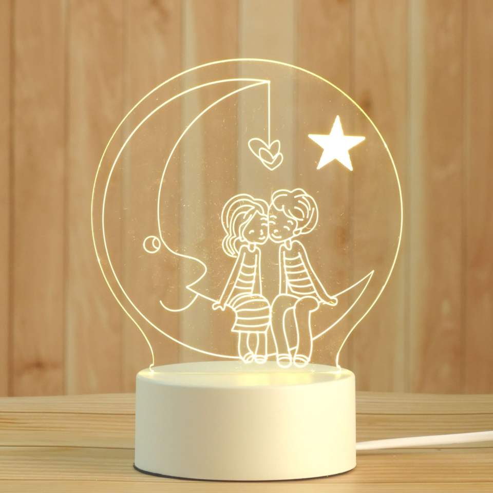 Luz de noche creativa 3D recargable Festival de niños Empresa de regalos Enchufe de comercio exterior en luz lunar