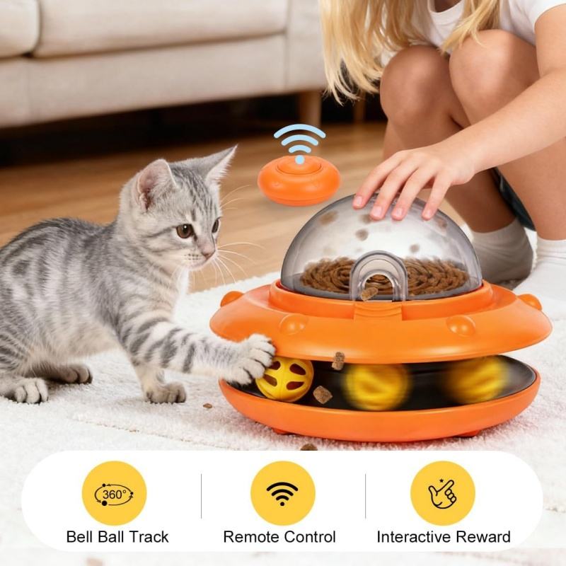 Juguete Interactivo Automático Recargable para Gatos, Dispensador de Golosinas con Control Remoto