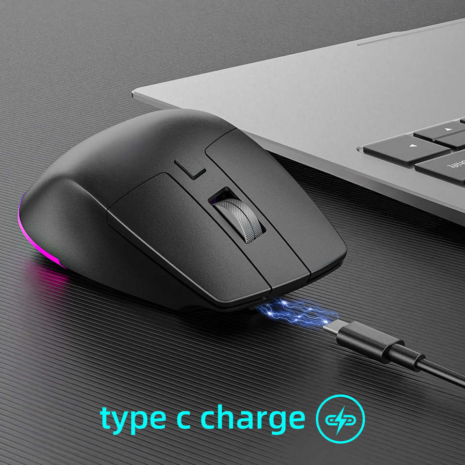 Ratón Recargable de Triple Modo para Juegos, con Retroiluminación RGB, Ergonómico, para Portátil, Oficina, Computadora, 6D, Inalámbrico 2.4G