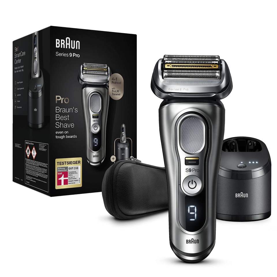 Afeitadora Eléctrica Recargable con Lámina de 0.05 mm, Cinco Cuchillas Dobles, Pantalla LED, IPX7, USB, Negra, Lavable, Cuerpo Alemán, Repuesto