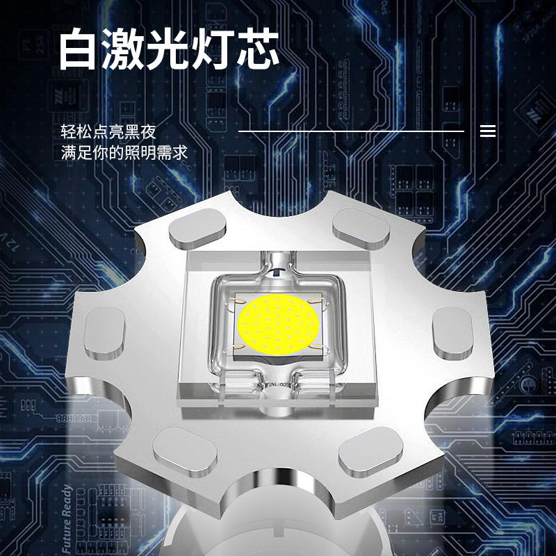 Linterna Recargable LED con Enfoque Ajustable, Alcance de Haz de 500-600M, Uso en Exteriores y en el Hogar, con Modo SOS