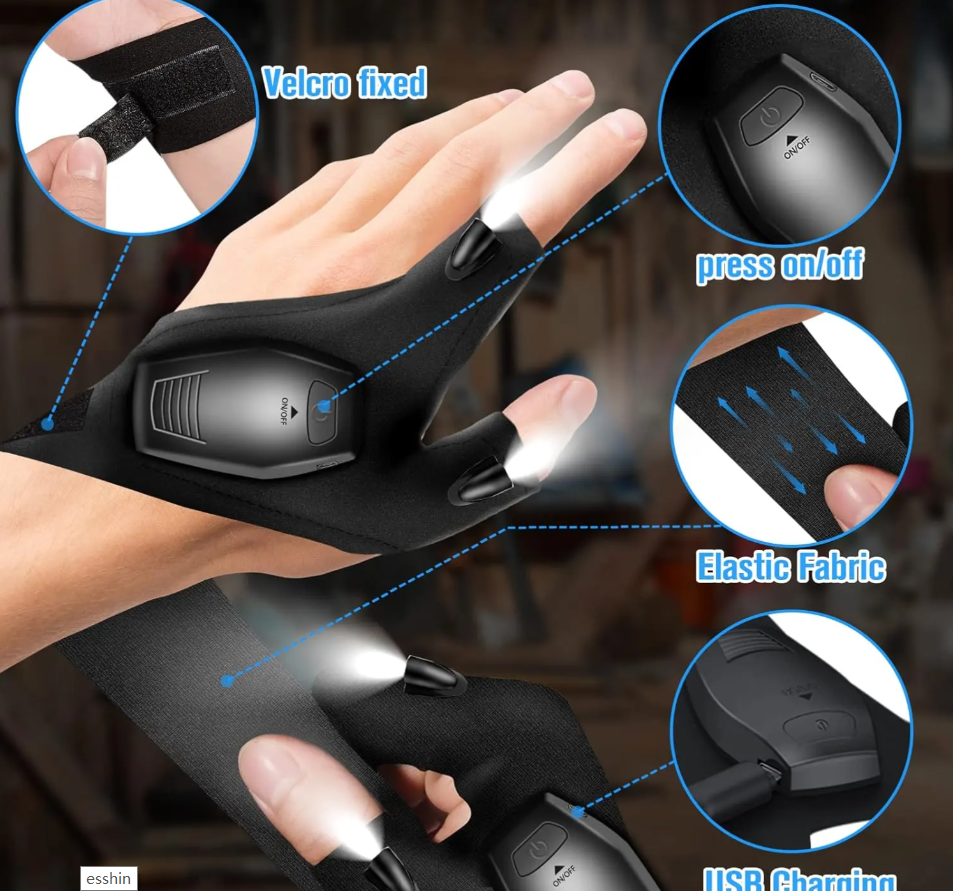 Guante de linterna LED recargable para exteriores con luces, regalos de pesca novedosos para hombres, herramienta para papá, Gadgets, regalos para reparar pesca