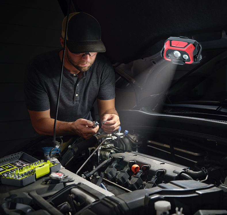 Linterna Frontal LED Recargable de 700lm, Híbrida SPOT+FLOOD con Modo de Destello Rojo, IP64, Resistente a Caídas de 1m, con Placa Magnética