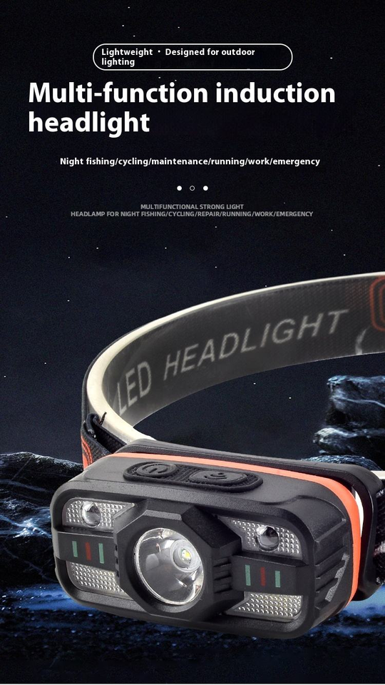 Linterna Frontal LED Recargable Súper Brillante con Sensor de Movimiento, Ligera y Manos Libres para Camping, Senderismo y Correr de Noche