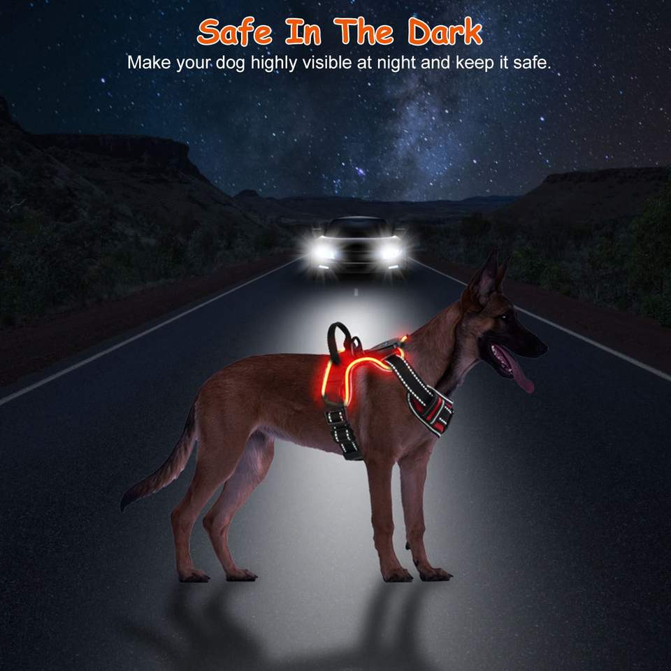 Arnés Luminoso LED Recargable para Perros, Chaleco Antitirones con Asa para Perros Pequeños, Medianos y Grandes