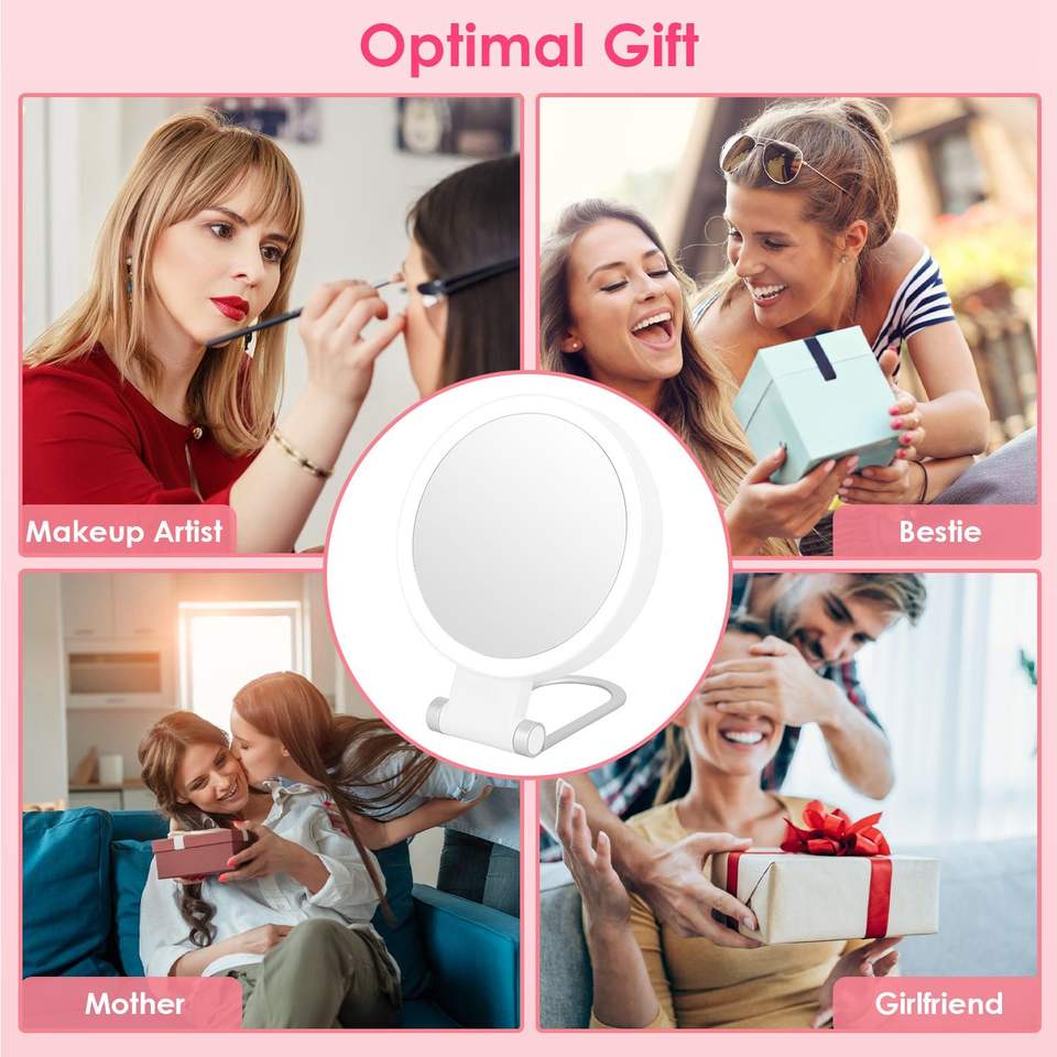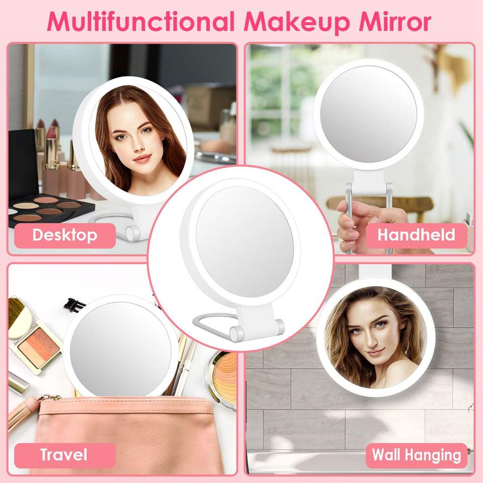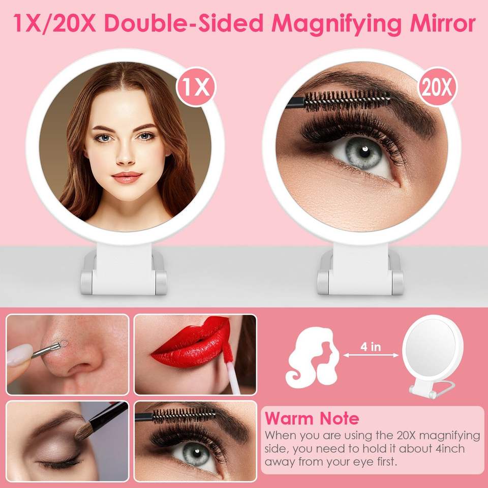 Espejo de Maquillaje LED Recargable de Viaje, 20X/1X, Doble Cara, con Brillo Ajustable, 3 Colores, Espejo de Aumento con Luz