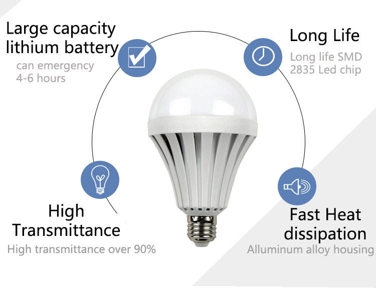 Bombilla Led Recargable de Emergencia con Control Remoto AC DC 5W E27 para Apagones y Camping