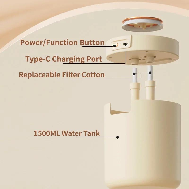 Mini Humidificador Recargable Portátil USB con Vapor Frío, 3 Modos y Luz LED para Hogar, Oficina, Dormitorio, Aceite Esencial