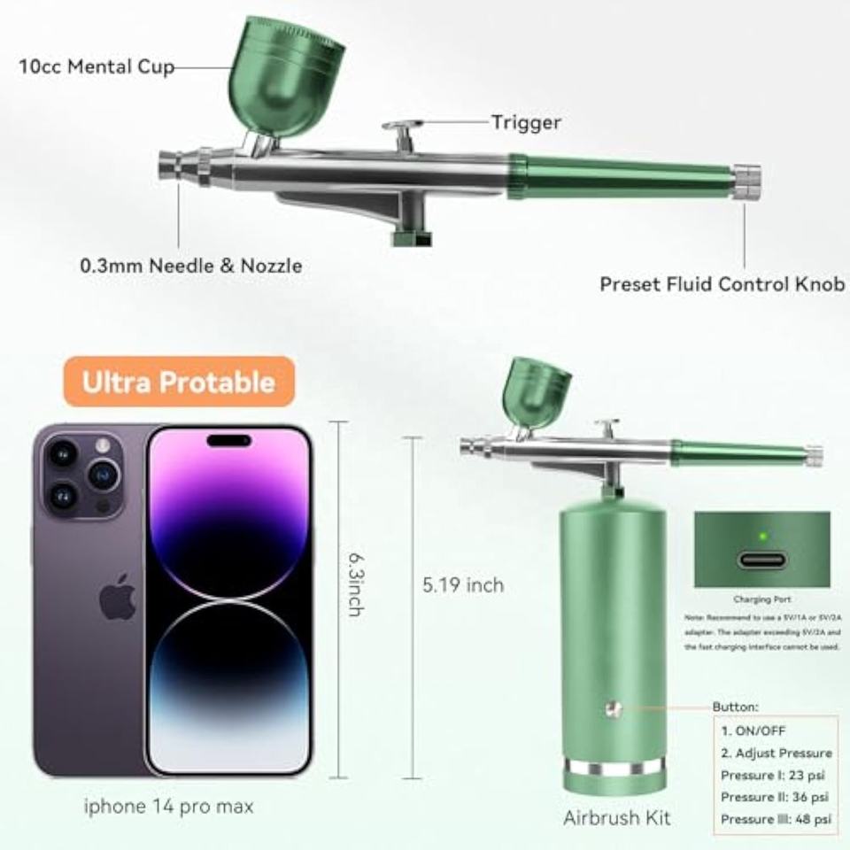 Juego de cepillos de limpieza de aire de alta presión sin obstrucciones recargables con boquilla de 0,3mm para decoración de pasteles de pintura de maquillaje de uñas