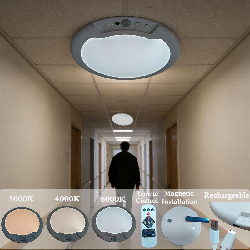 Luz LED Recargable con Sensor PIR, Instalación Magnética, 3CCT, Sensor de Movimiento Fotosensible, Luz de Techo para Balcón y Escalera