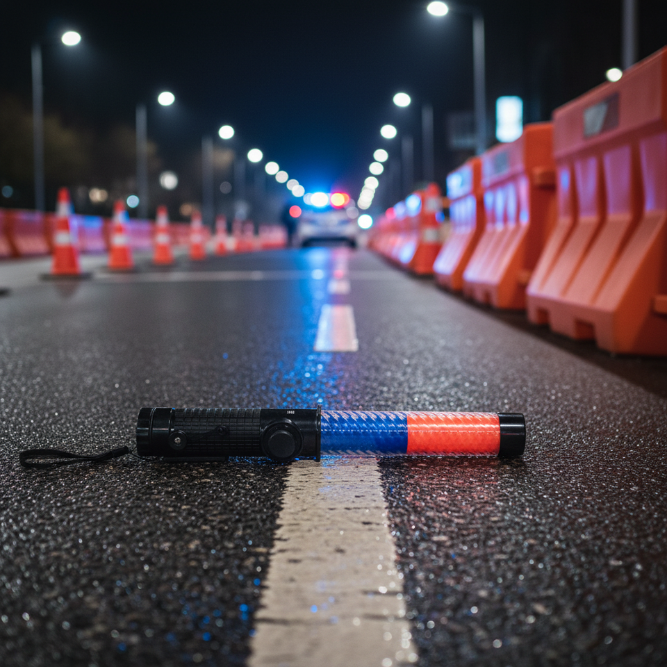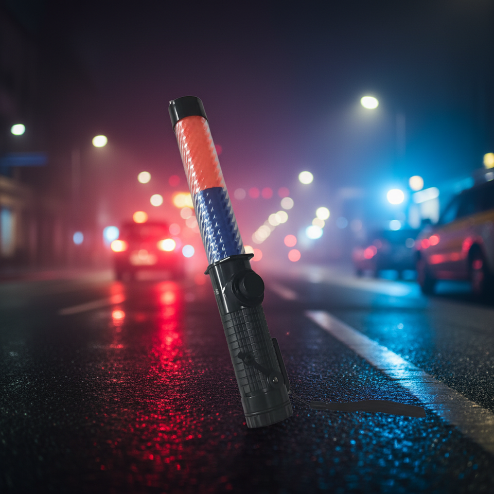 Bastón de Tráfico Recargable de PVC con Luces LED Rojas y Azules, Alta Intensidad, Reflectante Prismático, Clasificación IP68 para Control de Tráfico